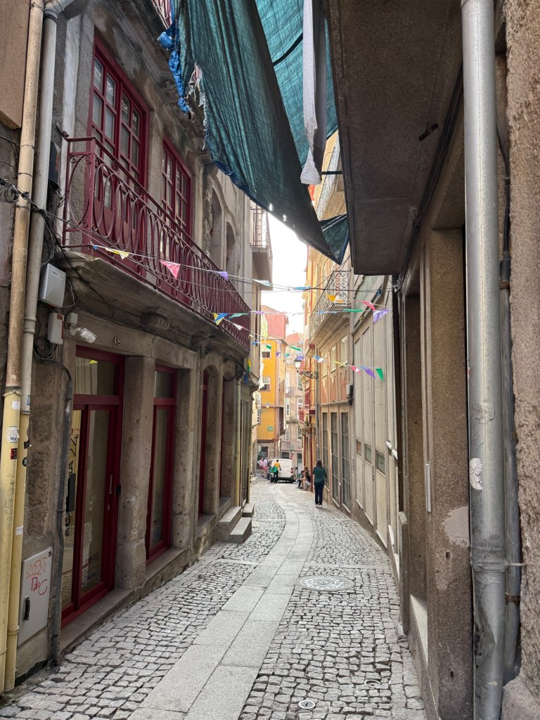 Landed with only a little flight delay — such a quick trip, wished it was longer so I could take more advantage of that Polaris business class. Even with a flatbed and fluffy blanket, I don’t sleep well on planes so I think I got about 90 minutes of sleep 😦 Dropped the luggage and then spent the day roaming around Porto — such a lovely city and SO MANY HILLS . And the narrowest cobblestone streets. Had a brie and ham sandwich with a glass of white sangria, under the Ponte Luis bridge, walked along the Douro river, visited a couple churches, including the Church of St. Francis aka “the gold church” because the entire inside was gold leaf (no photos allowed so look up Igreja de Sao Francisco). Really dragging by 6pm but stumbled on a place that was on my list, Cerveijaria Gazela, which supposedly Anthony Bourdain loved for their cachorrinhos — a Portuguese hot dog type sandwich and so good, with a glass of cold Super Bock beer. Just trying to stay awake on as much a “normal” schedule as possible to minimize the jet lag. Tomorrow I have a whole list of places to go including the Porto Cathedral to pick up my pilgrim credential which is like a passport you need to get stamped along the way to Santiago to prove you walked the Camino. Night night. Boa noite.
