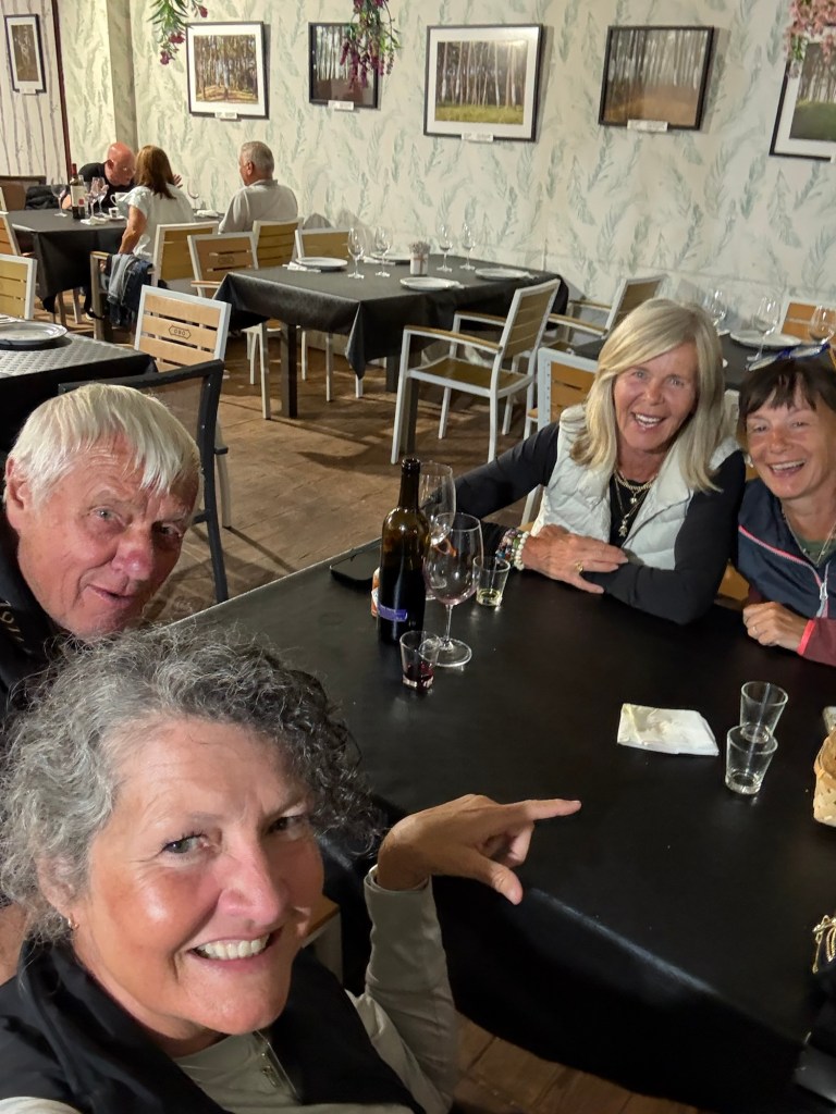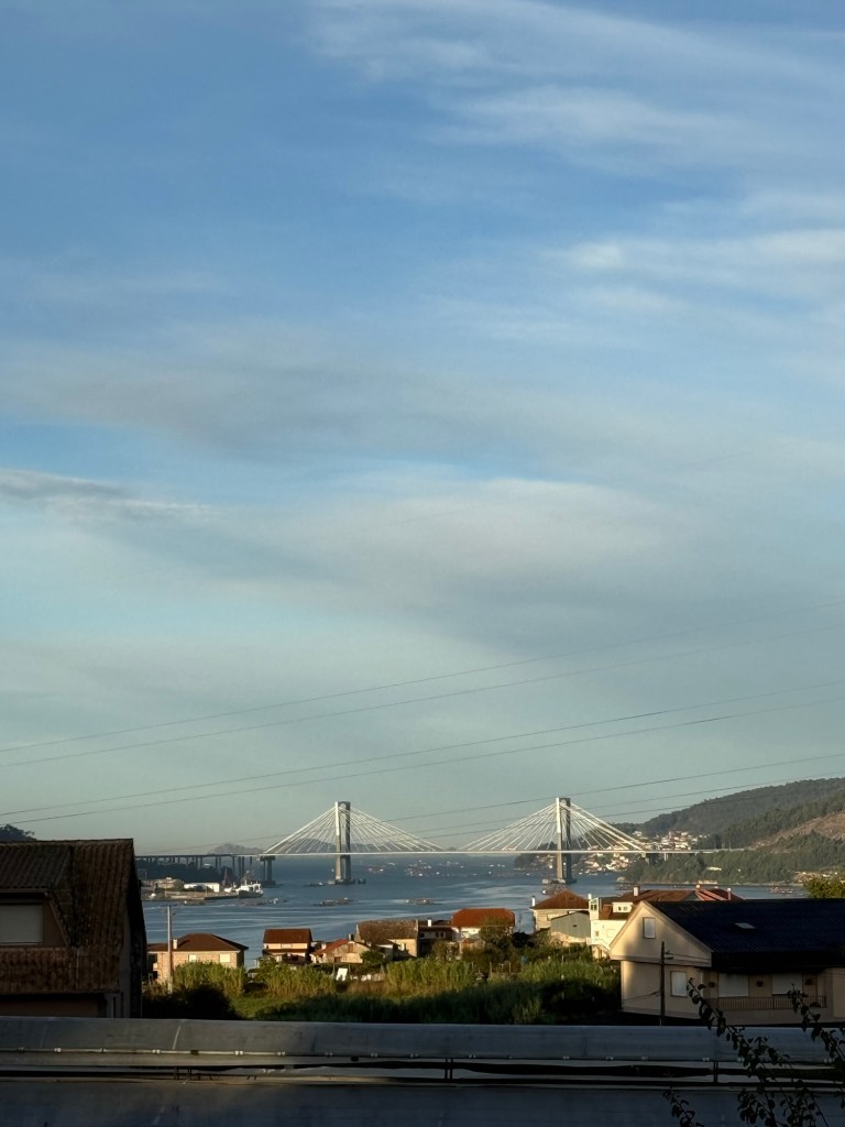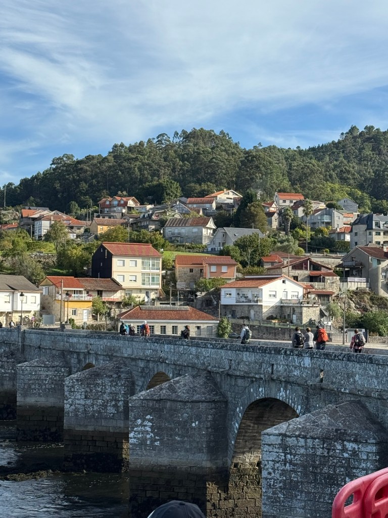 Before I think about today (even though my knees won’t me forget), gotta catch up on last night. After I got checked in to my cute apartment in Redondela, I threw some laundry into the washer and while sitting in the courtyard waiting for it, I met some neighbors. Kim and Daniela are neighbors in Toronto, although Daniela is originally from Austria. They were both my age-ish and had walked the French Camino (40 days!) last year. Eric is an 81-year-old gentleman from England and so, so funny and sweet. He had walked to the local store for some wine, cheese and “crisps.” And we had a little happy hour. Then he insisted on treating us to dinner at the restaurant down the road. He was quite the character. His wife passed away last year after a rapid decline into Alzheimer’s, and they were supposed to walk this Camino together (they had done the French way 3 years ago).