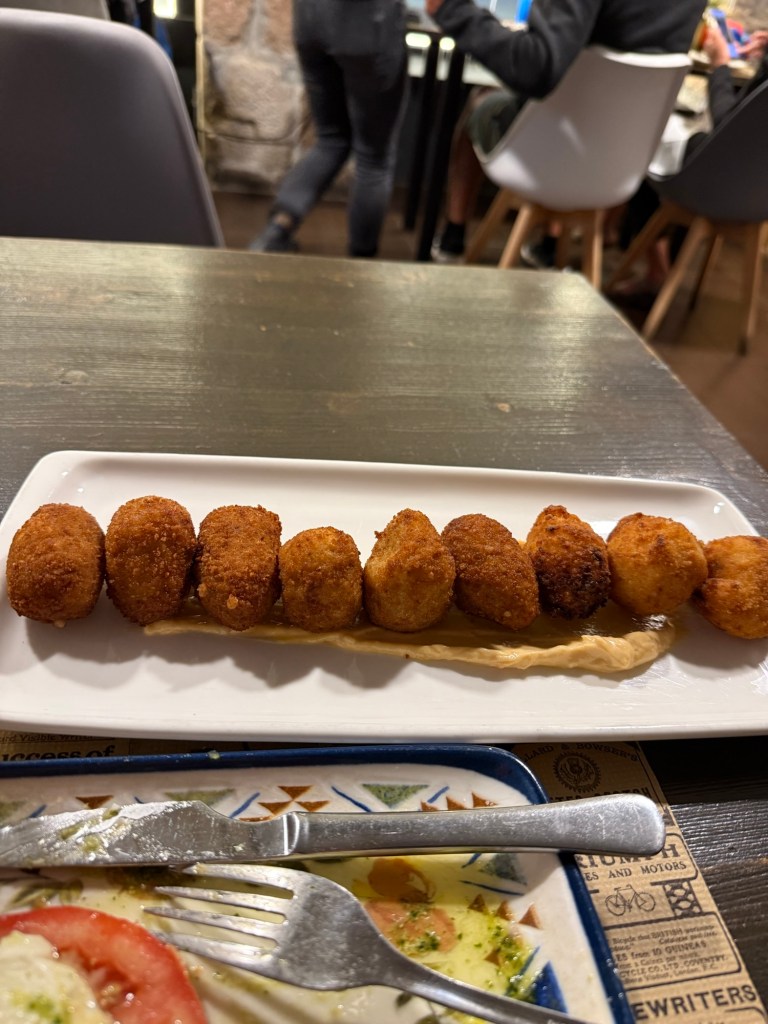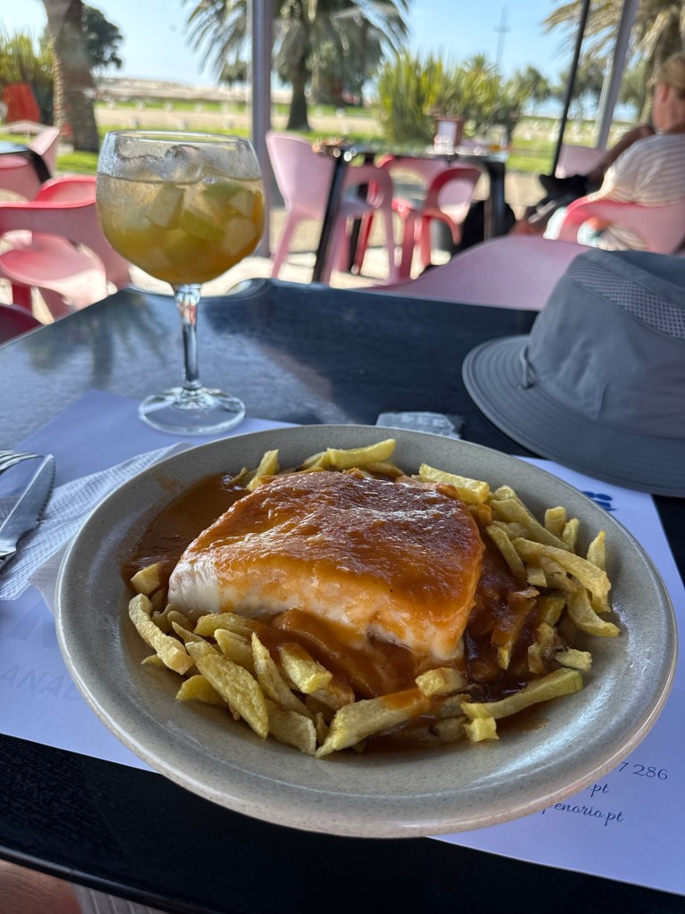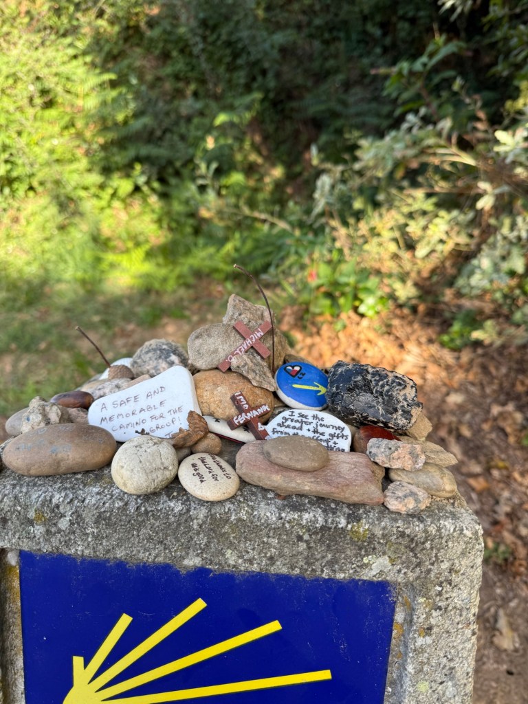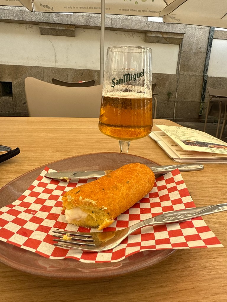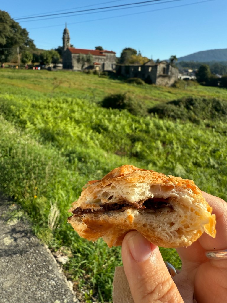 Leaving Porto: follow the arrowsCaipirinha after the first day’s walkJust follow the arrowsInside a rest stop for pilgrims Rest stop snacksNice rest spot Eucalyptus forestEsposende: the famous Portuguese sandwich called a FrancesinhaPortoPorto: not what it looks like. There were 0 catsPortoPorto cathedralPortoPortoInteresting? PortoSo delicious. Apparently a Bourdain favoriteMr & Mrs Tennessee Daily foot prep #1: Vaseline Daily foot prep #2: toe sock liner Daily foot prep #3: cushioned merino wool sockTime to wash socks Random artThis guy has quite a bit of drying laundry on his packPastel de Nata break Mural depicting women harvesting seaweed which is used for fertilizer for corn cropsA nice looking Albuergue (hostel)There are many water fountains for pilgrims along the way Las Cabanas: amazing baked goodsAlways time for a quick cafe Pilgrims resting at Las CabanasDrying socks on my backpack Chapel at Las CabanasCaminha in the distance Doggie friend finally left us at this cafe Friends on the road to ValencaOn the road to ValencaOn the road to ValencaValenca: FortValenca: FortValenca: FortValenca: FortValenca: chapel inside the fort ValencaValenca: Lunch of cod croqueta and cold beerThe bridge to SpainThe border between Portugal and Spain, on the bridge over the Miño RiverTui: entering Spain!Tui: dinner spot scoped out Tui: my splurge hotel, the Parador de TuiTui: View of the Santa Maria cathedral from my roomTui: locals tapas bar for dinnerTui: Dinner of tortilla and roasted padron peppersElevator fit check, leaving TuiA group doing morning stretches before walkingTuiTuiFollow the arrows out of TuiThis is where women would meet to do laundry in a shared “pool”Did not try the “Galician bagel”Also did not try the spiritual drinksRoman bridge at MagdalenaWhich way? (I went left, which was a little longer, but less industrial route)For drying cornClassic lunch — tortilla & Galician beerDon’t know who this guy is, going to look him up O Porriño city hallUsed book store. 1 book for 3,90, 2 books for 6,50, 4 books for 11.View from my room, Hotel Azul, O PorriñoCaprese for dinner So many croquetasO PorriñoO PorriñoOfficially less than 100km to goTrail queen The way is getting crowdedVery steep downhill! Giant avocado tree! RedondelaMy adorable apartment for the night Apartment in Redondela Shells for apartment guests (scallops shells are the official sign for St James/the CaminoLaundry! Sunrise in RedondelaTrail getting crowdedSometimes residents put out treats and a change dish